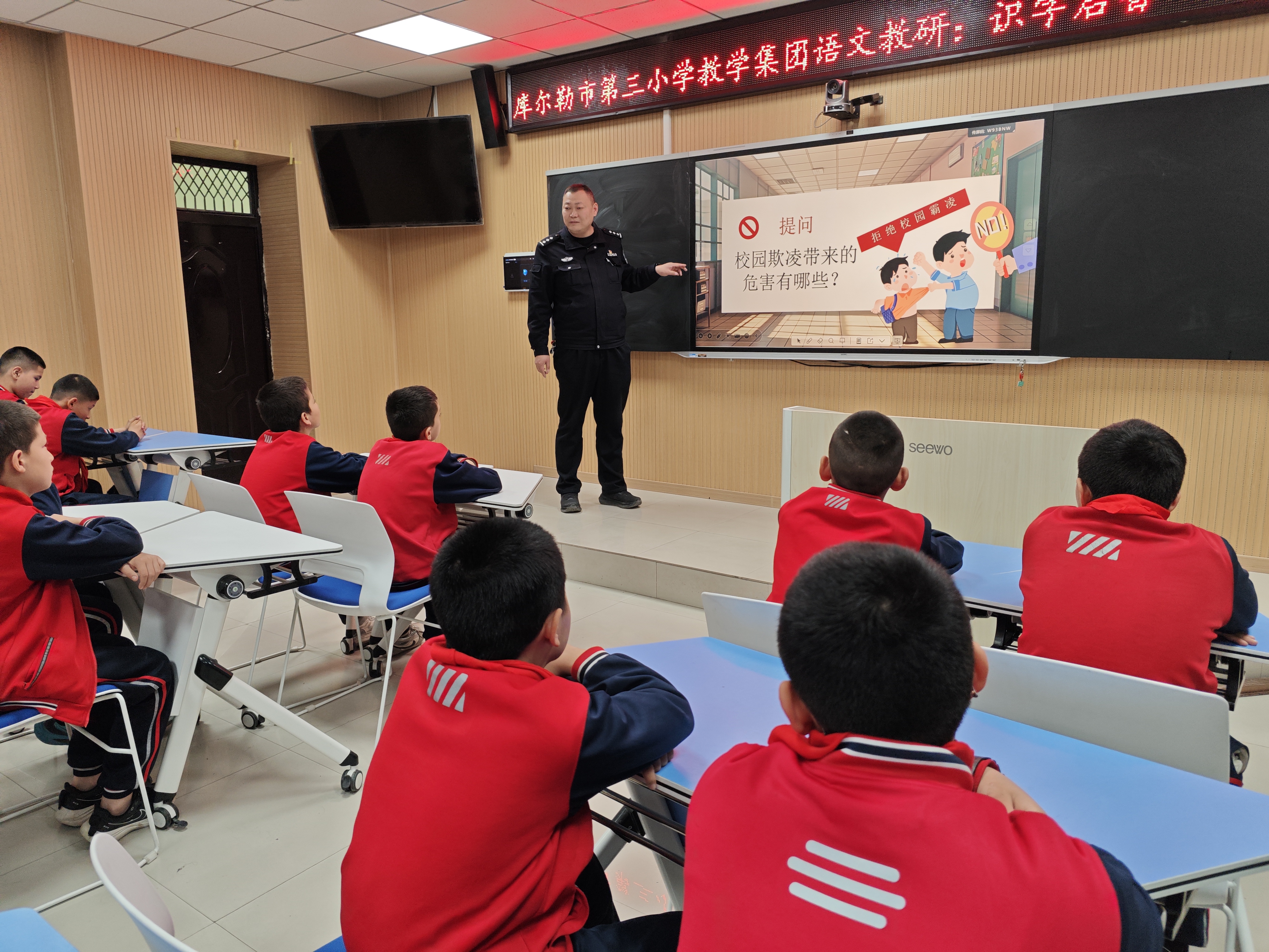 为进一步强化青少年法治观念,筑牢校园安全防线,4月1日,库尔勒市公安局民警、库尔勒市第三小学法治副校长张琪走进校园,以“拒绝校园欺凌,法治护航青春”为主题,为在校学生带来了一堂兼具专业性与实用性的法治宣讲课。
