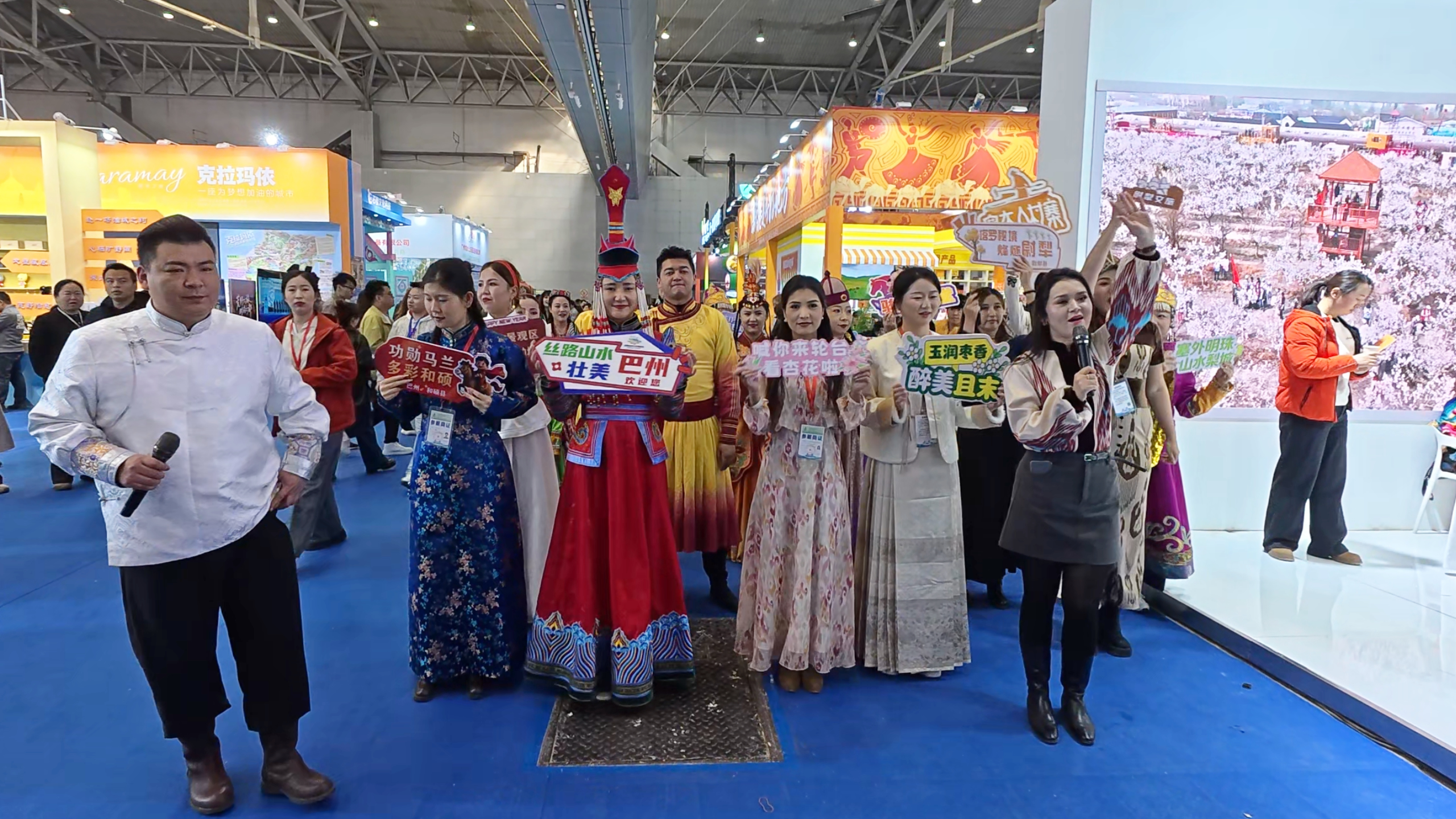 3月27日,以“丝路新韵·春满新疆”为主题的2026新疆文化旅游产业交易博览会暨第七届新疆春季旅游博览会在新疆国际会展中心开幕。巴州展团携800余种特色文创产品、农特优品及文旅融合项目精彩亮相,展台前人头攒动,歌舞飞扬,全方位展现“丝路山水·壮美巴州”的独特魅力。