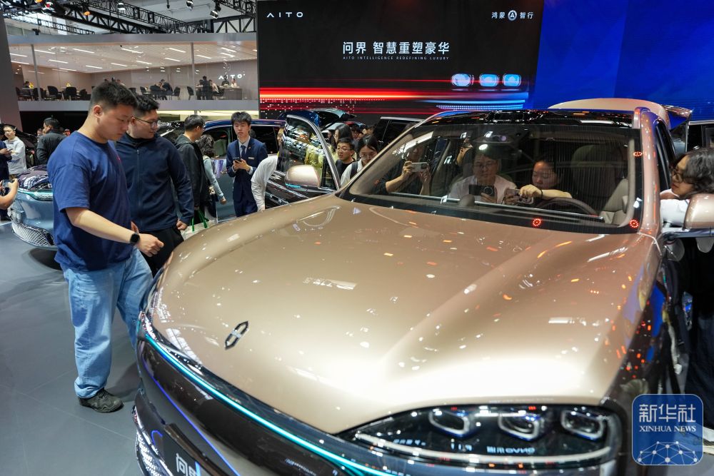 ↑ 4月26日,在2026北京车展上,参观者参观“问界”系列车型。
