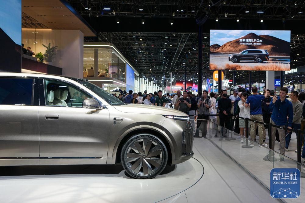 ↑ 4月26日,在2026北京车展上,参观者在理想公司展台参观新款车型L9 Livis。