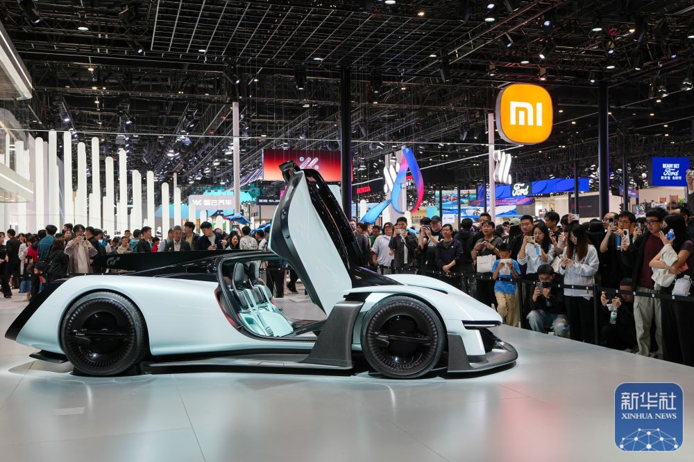 ↑ 4月26日,在2026北京车展上,参观者在小米公司展台参观概念车小米Vision GT。