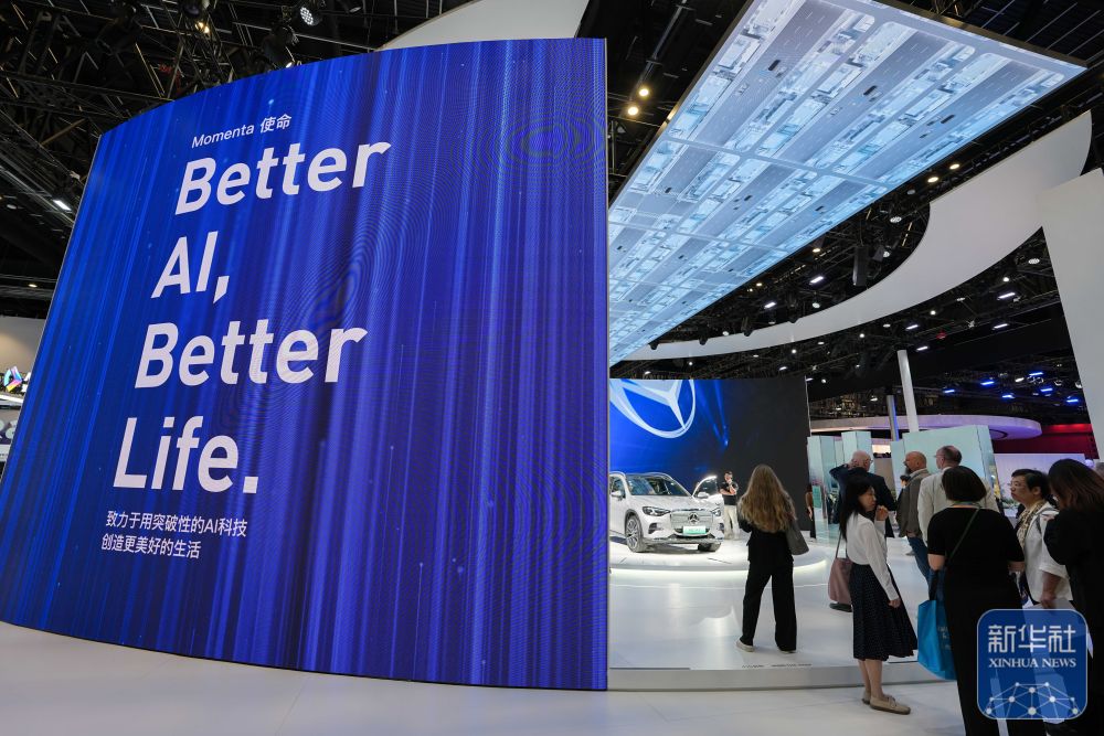 ↑ 4月26日,在2026北京车展上,参观者在为车企提供自动驾驶技术的北京初速度科技有限公司展台参观。