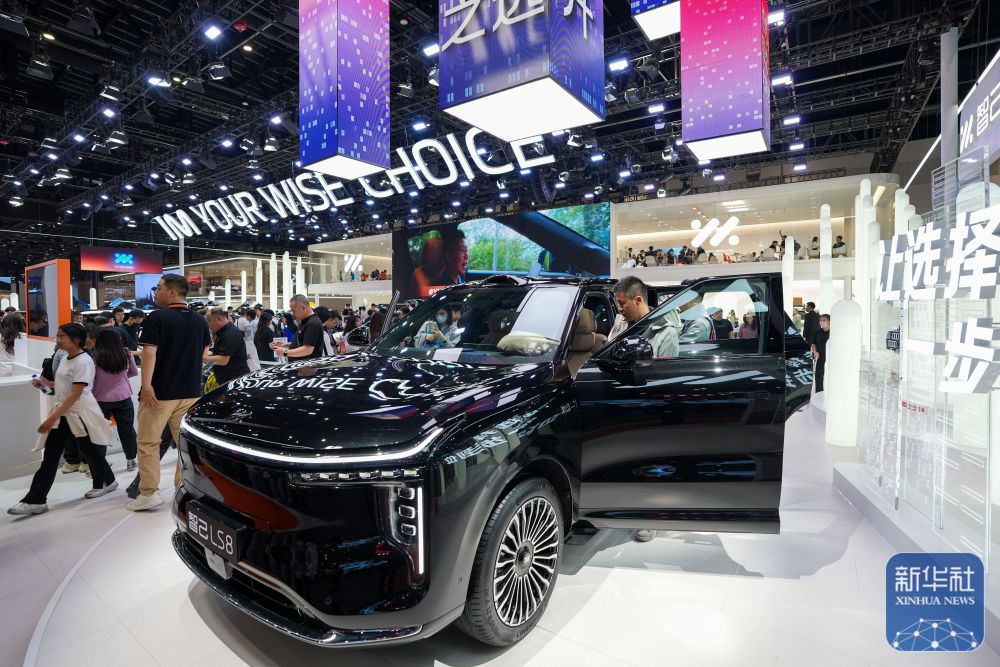 ↑ 4月26日,在2026北京车展上,参观者在智己公司展台参观智己LS8。