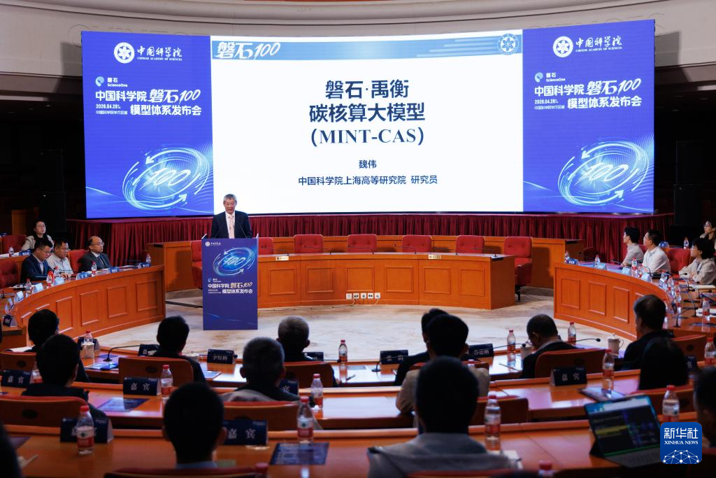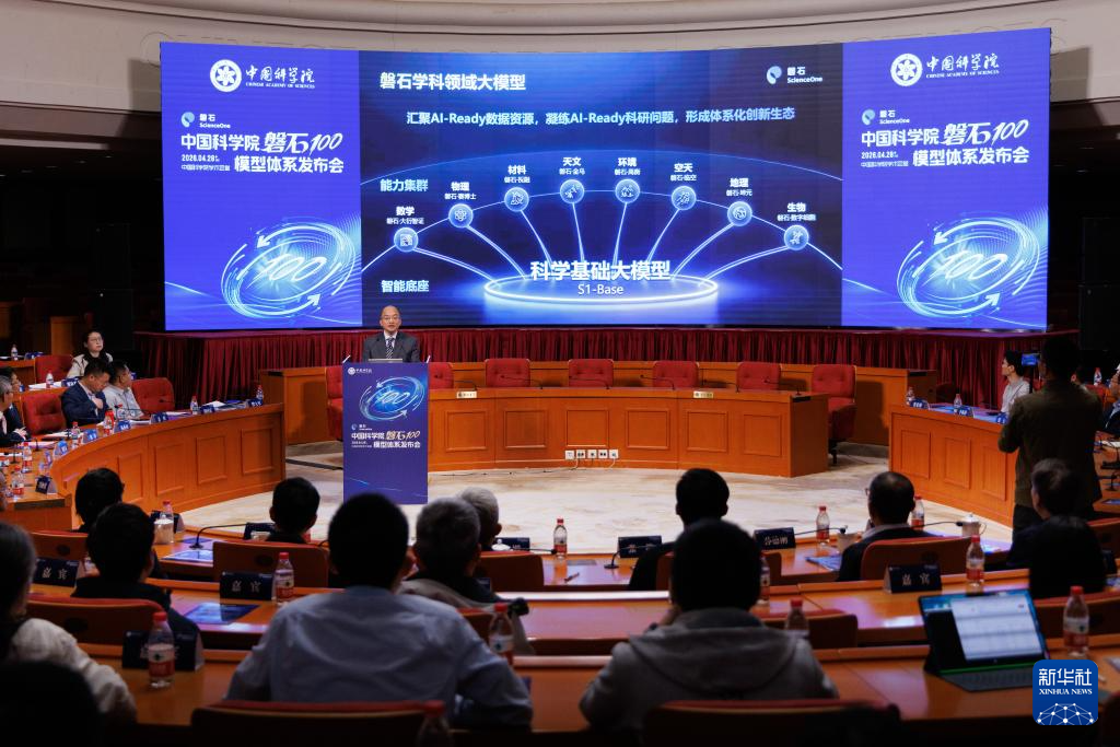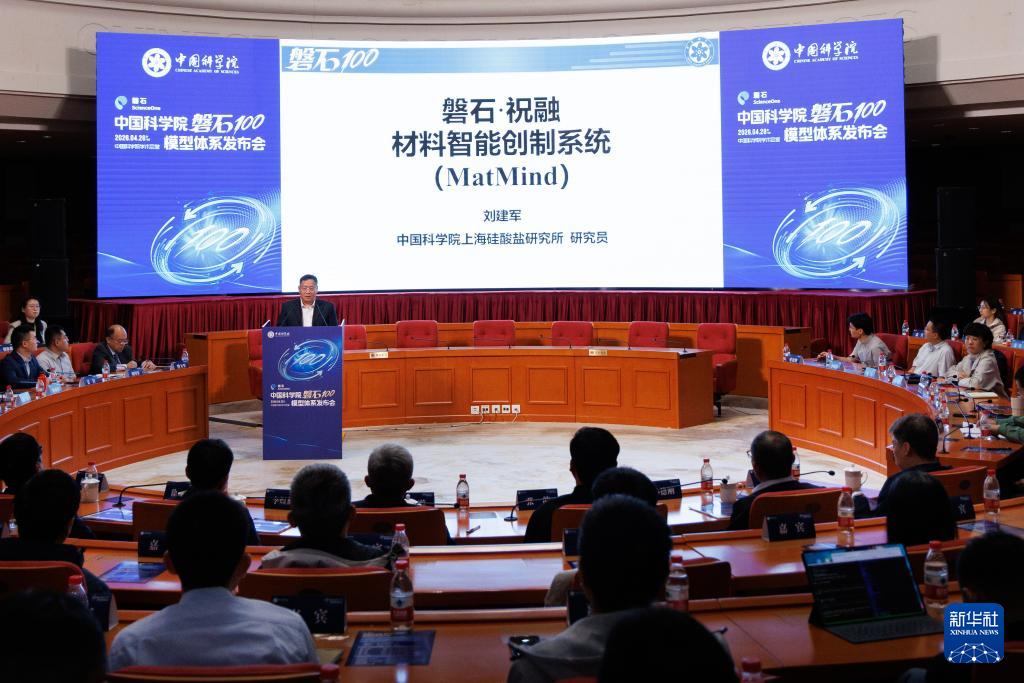 4月28日拍摄的中国科学院“磐石100”模型体系发布会现场。新华社记者 金立旺 摄