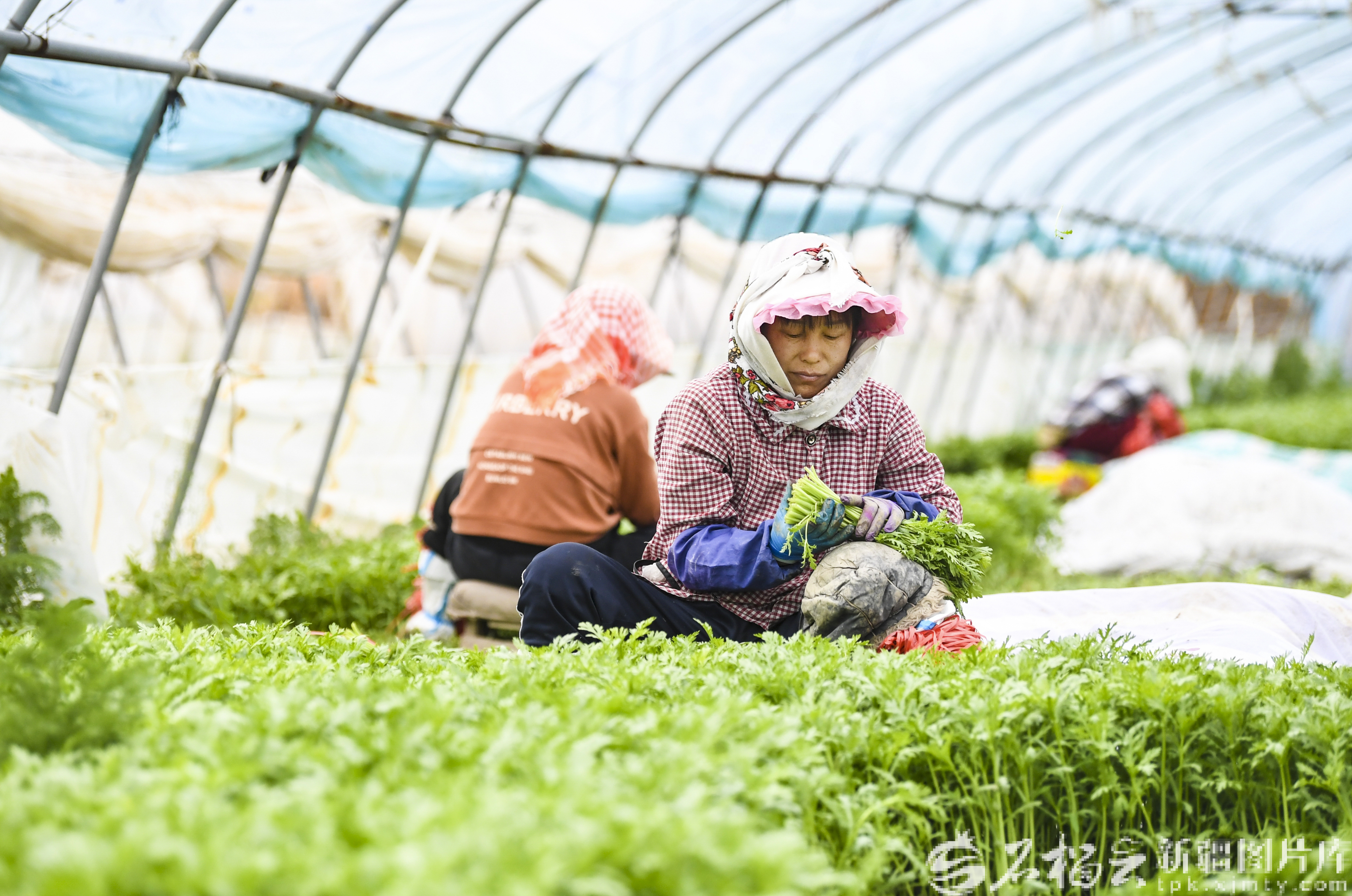 连日来,米东区各大蔬菜基地全面进入春菜采收季,茼蒿、菠菜、油白菜等蔬菜长势喜人、鲜嫩饱满。在三道坝镇十二户东村惠顺绿色生态家庭农场,村民们抢抓农时采摘茼蒿,源源不断运往市场,丰富市民餐桌。