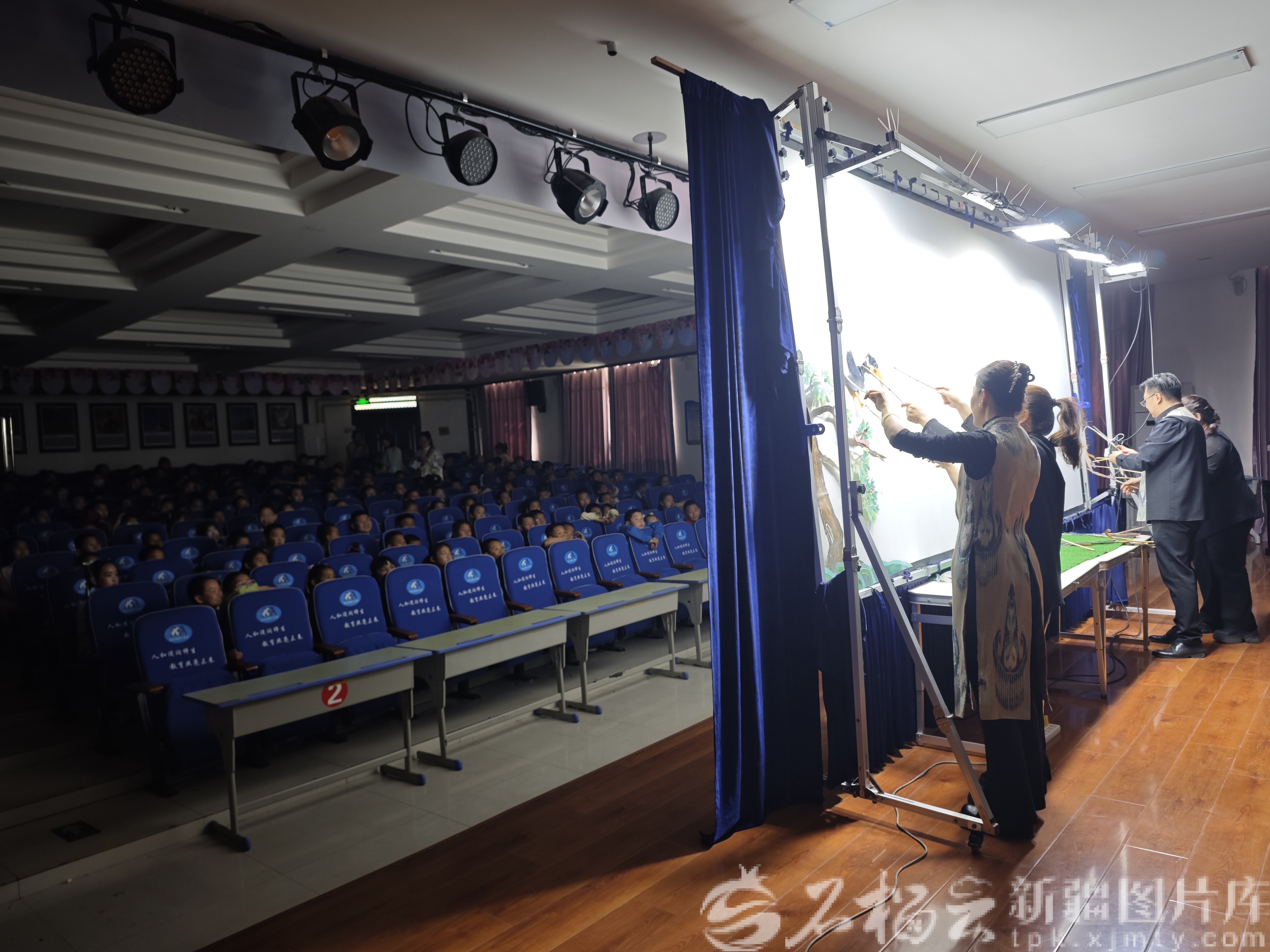 4月10日,昌吉市文化馆皮影艺术团在昌吉市第十小学阶梯教室表演皮影。石榴云/新疆日报记者 朱成晓 摄