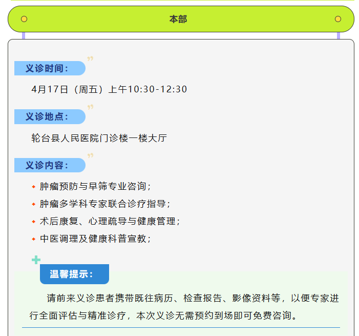 义诊预告|全国肿瘤防治宣传周 MDT多学科专家团队大型公益义诊