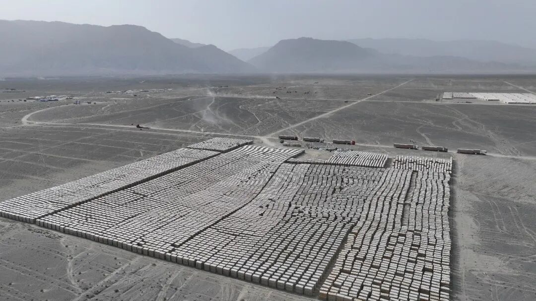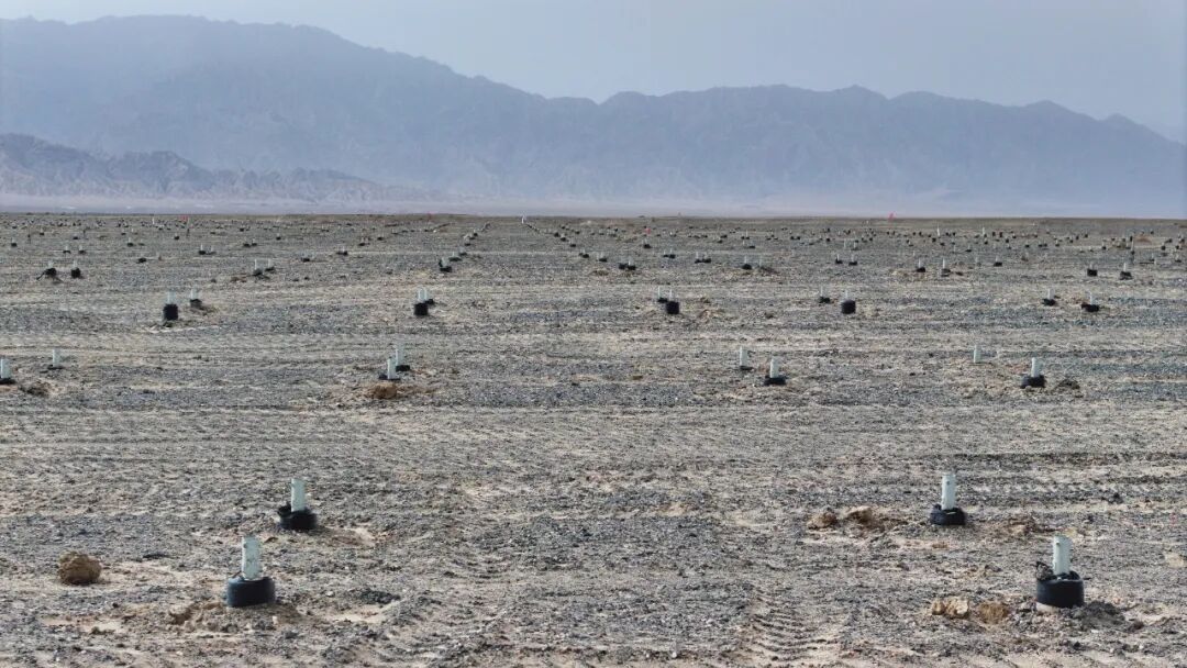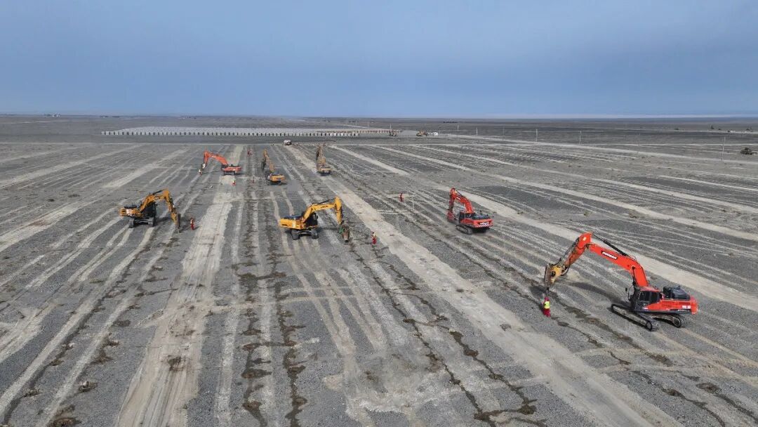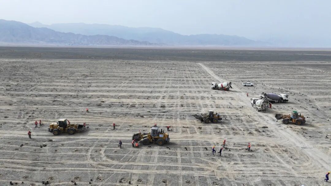 该项目位于新疆巴州若羌县城以南27公里处,总用地面积达25903亩,项目总投资超26.5亿元,总装机容量100万千瓦。中建三局标段主体工程主要包含约30万根微孔灌注桩、1.9万组双立柱固定式支架、100万片光伏组件和1672台逆变器等;以及场内检修道路、防洪堤等配套附属工程。