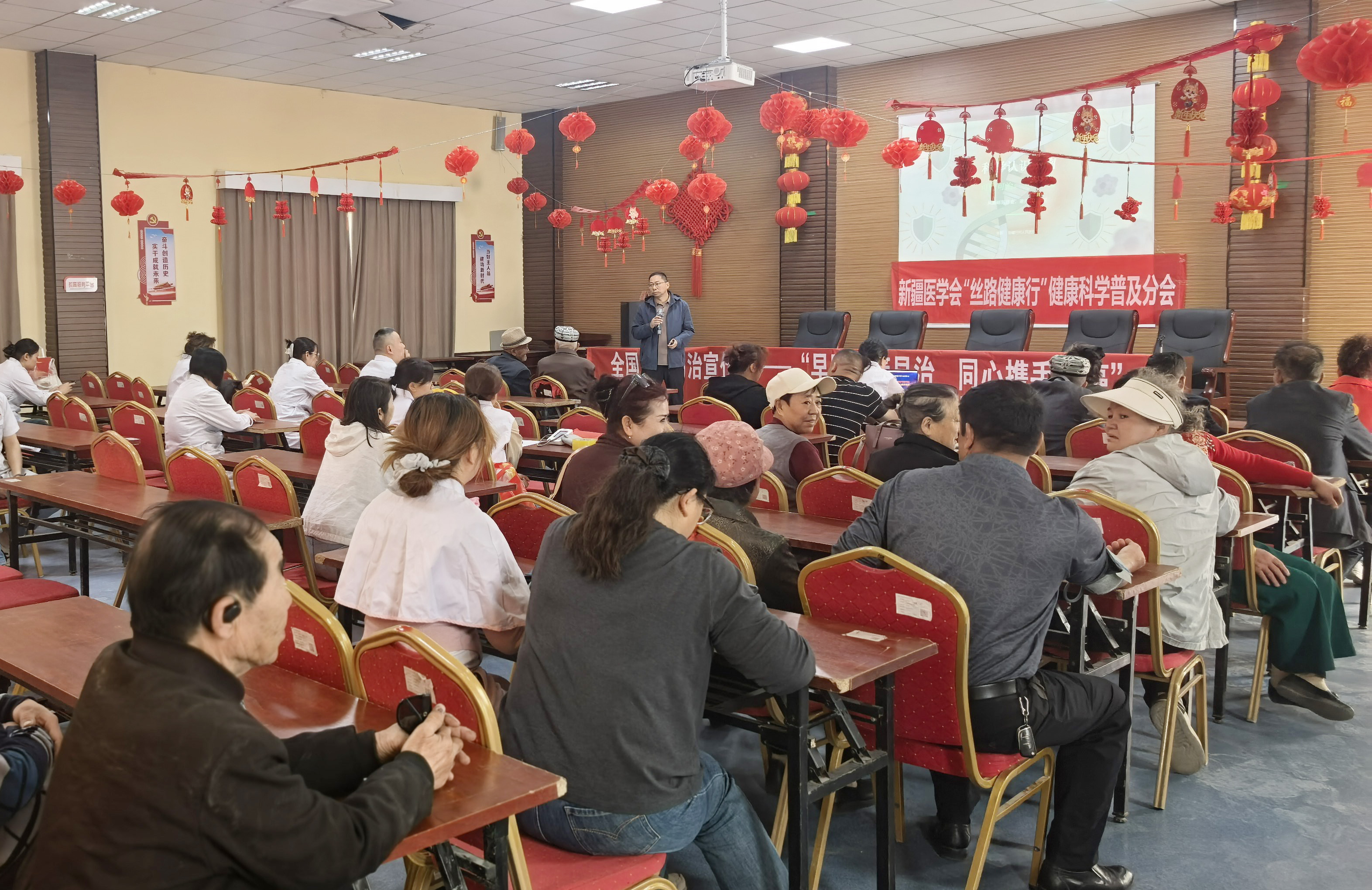 巴州人民医院医务人员在库尔勒市兰干乡贡拉提村活动现场进行科普讲座。通讯员 张蕾 摄