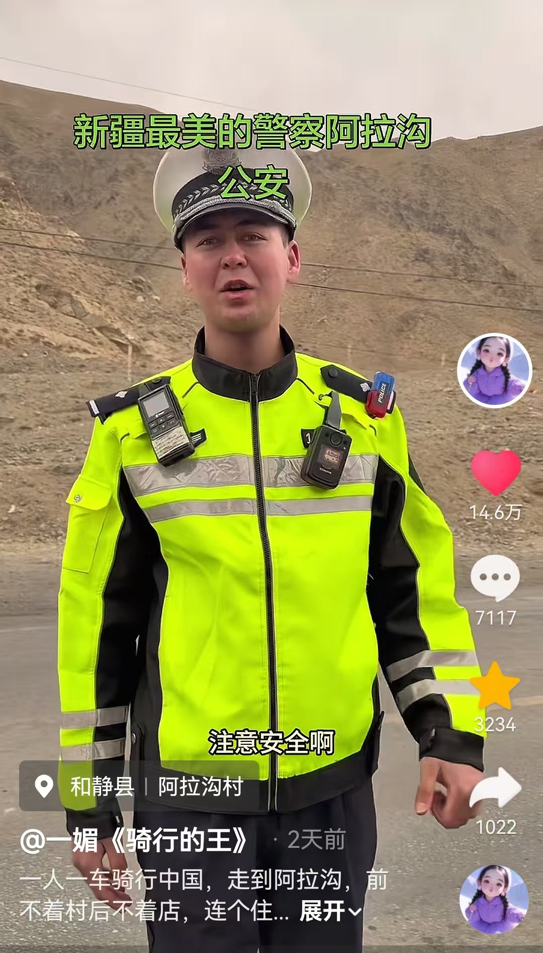 “我只是做了力所能及的小事。作为基层民警,守护群众出行平安、向有需要的人伸出援手,就是我义不容辞的责任。”连日来,和静县公安局阿拉沟乡派出所民警佳吾兰·阿力木暖心帮扶自驾骑行游客的短视频,在网络平台持续刷屏、热度不减。这条视频发布仅两天,就收获14万次点赞、7000余条暖心留言,多家主流媒体相继转发报道,让这位扎根天山深处、年仅24岁的年轻民警,走进了全国网友的视野,用平凡善举诠释了“最美”的内涵。