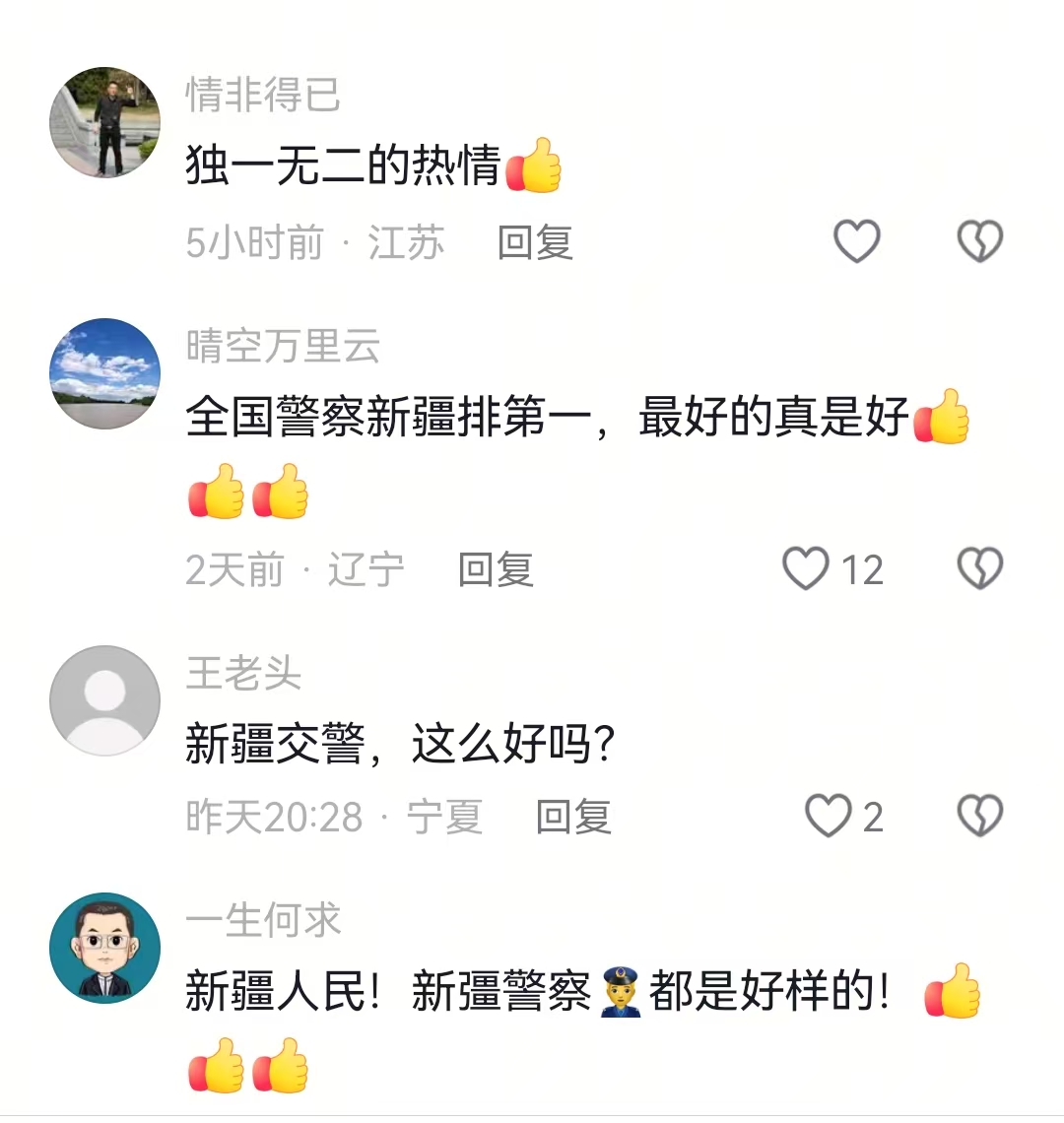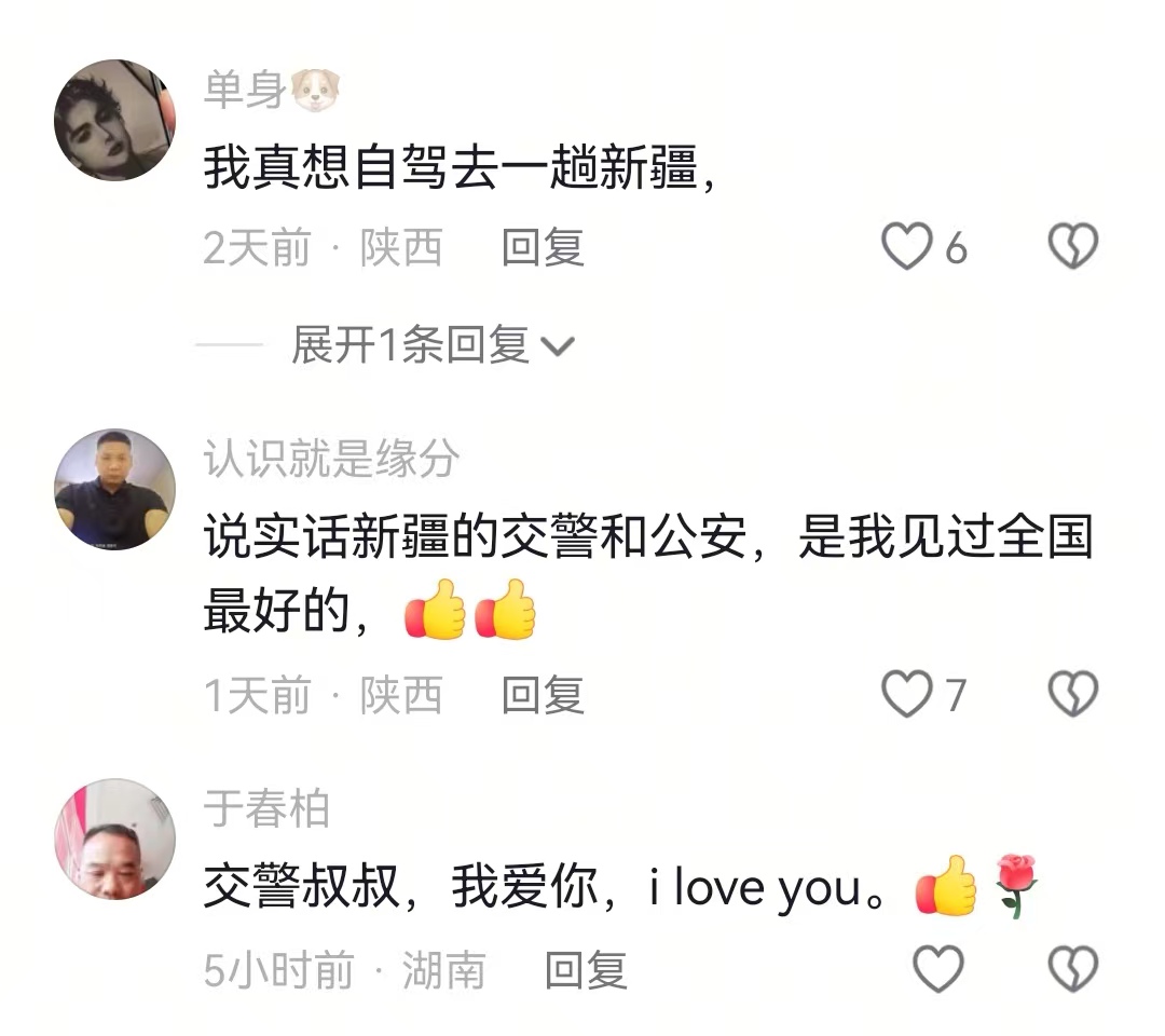 心怀感激的骑手,将这段跨越千里的暖心帮扶经历全程拍摄下来,以“新疆最美警察”为主题发布到网络平台。视频一经发出,瞬间引发全网共鸣,无数网友留言点赞、传递温情:“新疆警察是我见过最好的!”“这就是新疆警察的温度!”“民族团结一家亲,这份善意太动人了!”