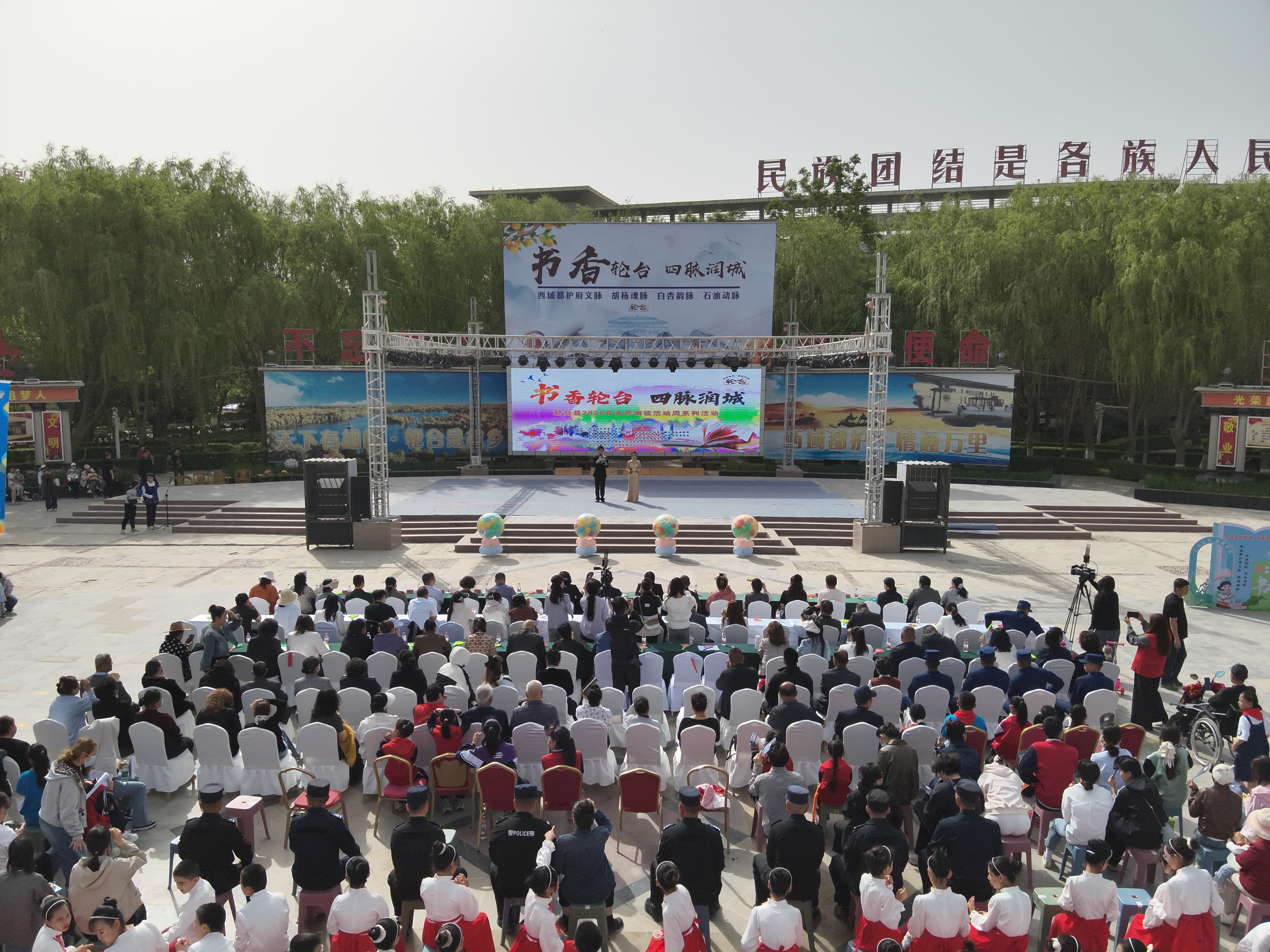 4月23日世界读书日当天,“书香轮台·四脉润城”轮台县2026年全民阅读活动周系列活动在县团结广场拉开帷幕。活动以西域都护府文脉、胡杨魂脉、白杏韵脉、石油动脉为内核,采用“1+N”动静结合模式,集舞台展演、主题展陈、非遗体验、数字阅读于一体。
