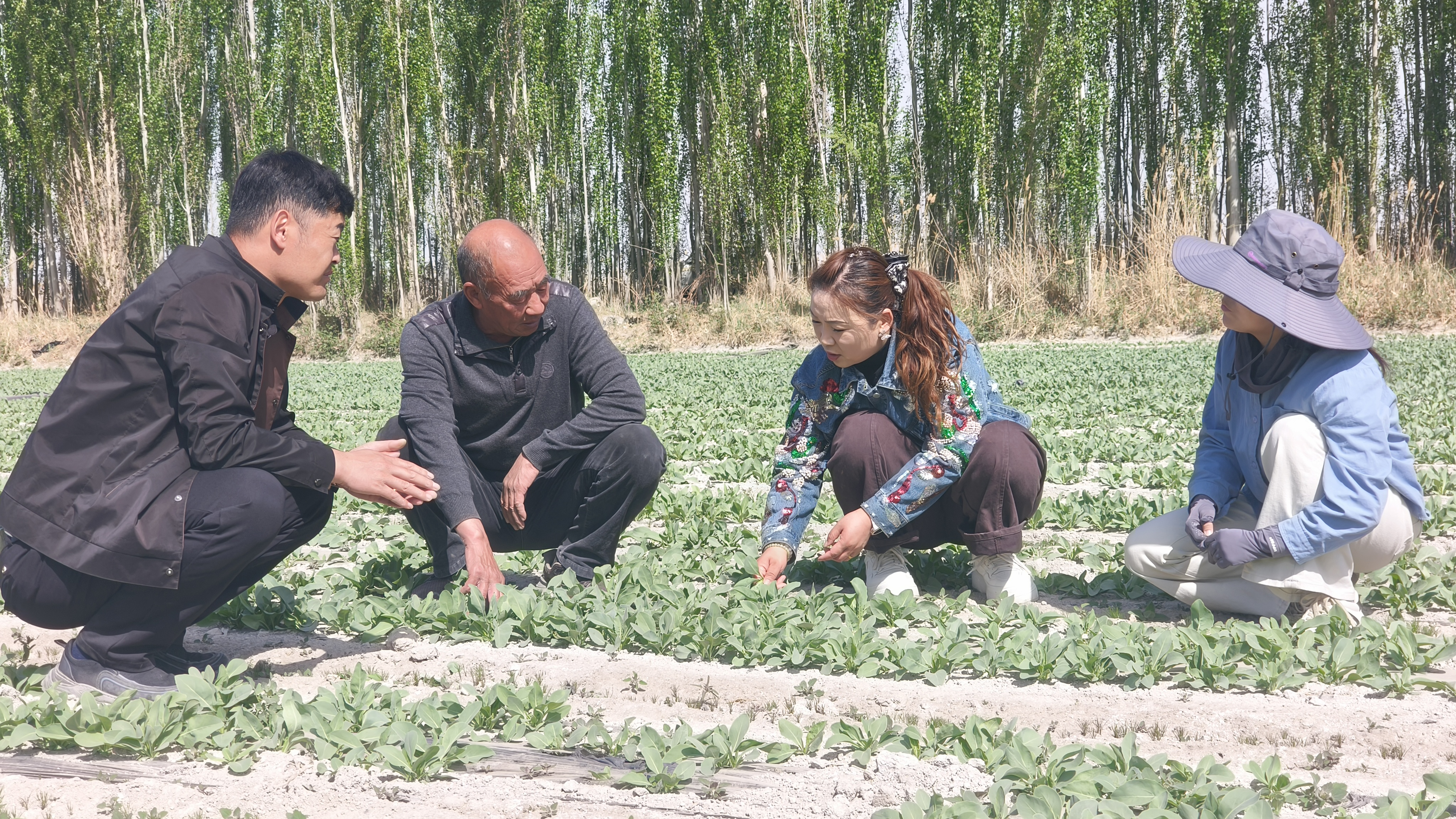 4月22日,和静县乃门莫墩镇包尔布呼村板蓝根种植基地现场。通讯员 高那清 摄